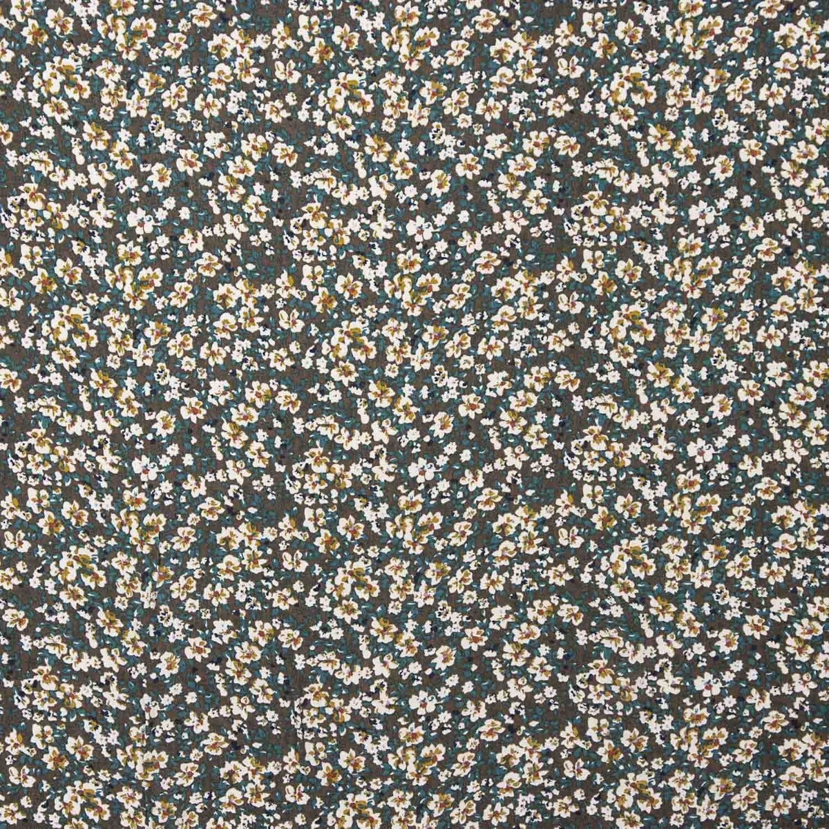 Tissu en viscose 100 % imprimé avec des motifs floraux sur un fond sombre, parfait pour créer des vêtements légers avec une touche de fraîcheur. Sa texture douce et fluide garantit un confort optimal. Idéal pour la confection de blouses, robes, jupes et foulards, ce tissu se distingue par son tombé élégant et sa respirabilité. De plus, il est facile à travailler et conserve sa forme, ce qui en fait un excellent choix pour les projets de mode.