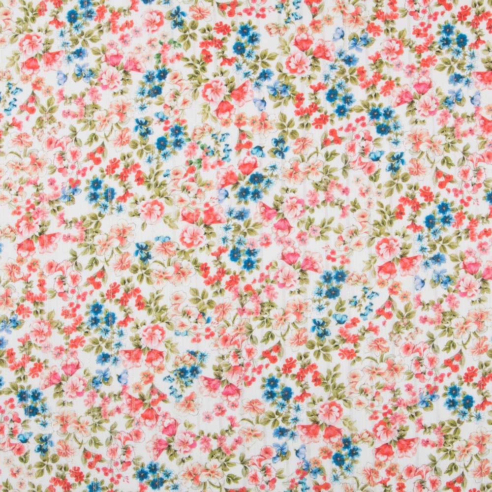 Tissu à fleurs avec un dessin en lurex doré. La principale caractéristique de la viscose est la grande sensation de confort, car il s'agit d'un tissu frais et respirant. Il n'accumule pas d'électricité statique et est très absorbant. Tissu idéal pour la confection de robes, jupes, pantalons et chemises.