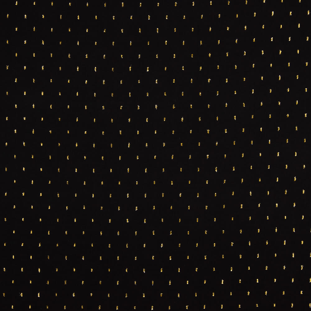 Tissu en viscose avec des éclats de lurex dorés sur fond noir. La viscose est un tissu très fin qui se caractérise par son drapé, avec une texture douce et fraîche. Tissu en viscose lisse avec lequel vous pouvez confectionner des robes, des jupes, des chemisiers, des pantalons palazzo et toutes sortes de vêtements avec du mouvement.