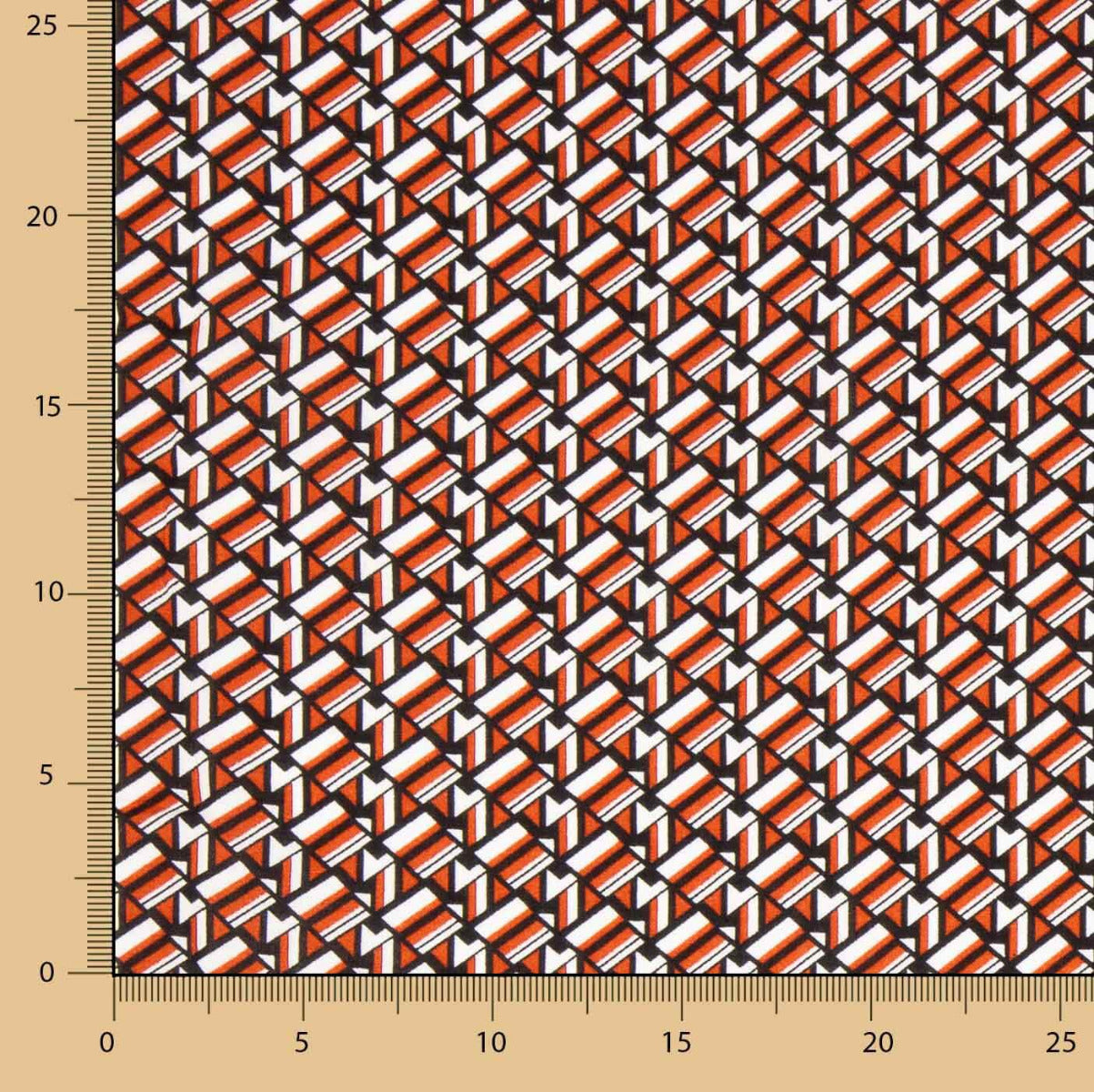 Geometric print viscose fabric that combines reddish tone with black and white, fabric with fall, very flowy and silky.viscose is a fine fabric that is characterized by the flight and fall, with a soft and fresh texture.smooth viscose fabric with which you can make dresses, skirts, palazzo trousers, jumpsuits and all kinds of fashionable garments.a fabric that will certainly be trend for this season.being a 100% viscose fabric, we recommend a wash prior to being manipulated.