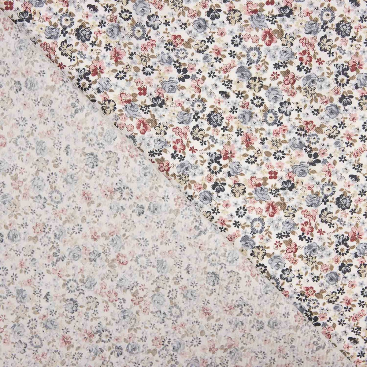 Tissu jersey de coton doux au toucher imprimé de petites fleurs dans une combinaison de tons bleus, roses et mauves. Parfait pour coudre des chemises, des robes et des tissus pour enfants, son poids léger assure confort et respirabilité. L'imprimé floral délicat apporte une touche romantique et intemporelle, parfaite pour des créations élégantes et polyvalentes. Avec ce tissu de haute qualité, vos créations se distingueront par leur charme naturel et sophistiqué.