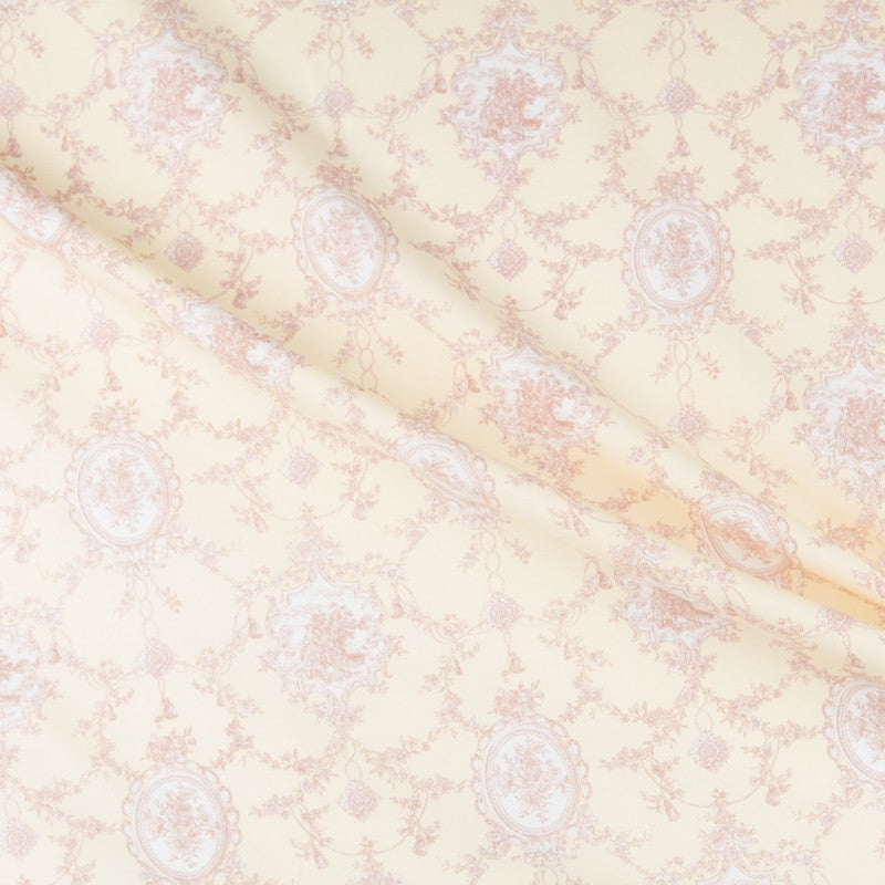 Viyella avec un imprimé d'écussons et médailles sur fond jaune. La viyella est un tissu très doux, soutenue et léger, avec une trame qui rappelle celle du sergé. Tissu en ligne en coton et polyester, idéal pour confectionner des robes à fleurs, tailleurs et chemises.