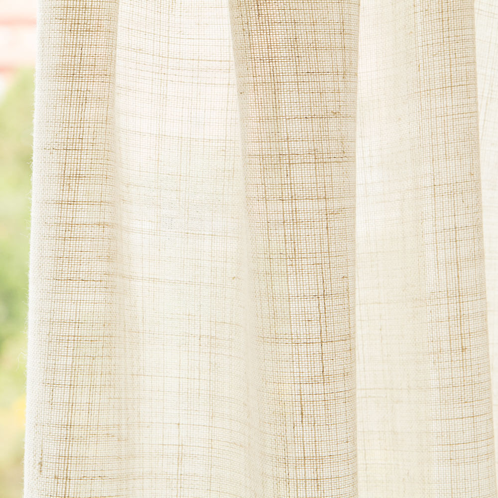 Voilage naturel rustique "Lombardie" pour la décoration de la maison. Tissu aspect rustique très élégant avec une trame marquée et une certaine opacité sans devenir opaque. Tissu avec du plomb et hauteur spéciale de 320 cm.