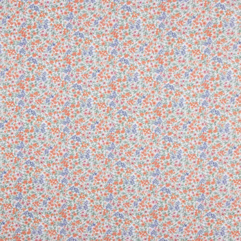 Tissu en voile de coton de qualité supérieure dans un imprimé floral multicolore à la mode avec des touches d'orange et de vert. Le tissu imprimé en voile de coton Supima de haute qualité est un tissu composé de brins de coton fins de 5 cm de long, ce qui lui confère une résistance et une souplesse exceptionnelles. Il s'agit d'un coton 100 % naturel de qualité supérieure, d'une grande résistance et d'une excellente douceur, qui prendra soin des peaux les plus délicates. Ajoutez une touche d'élégance et de distinction à votre vêtement avec des imprimés à la mode pour vos projets de couture. Spécialement conçu pour la couture de chemises, de tissus pour enfants, de compléments et de toutes sortes de décorations. Nous vous conseillons d'utiliser un savon neutre pour les vêtements délicats et d'utiliser un cycle doux dans la machine à laver pour garantir une plus longue durée de vie.