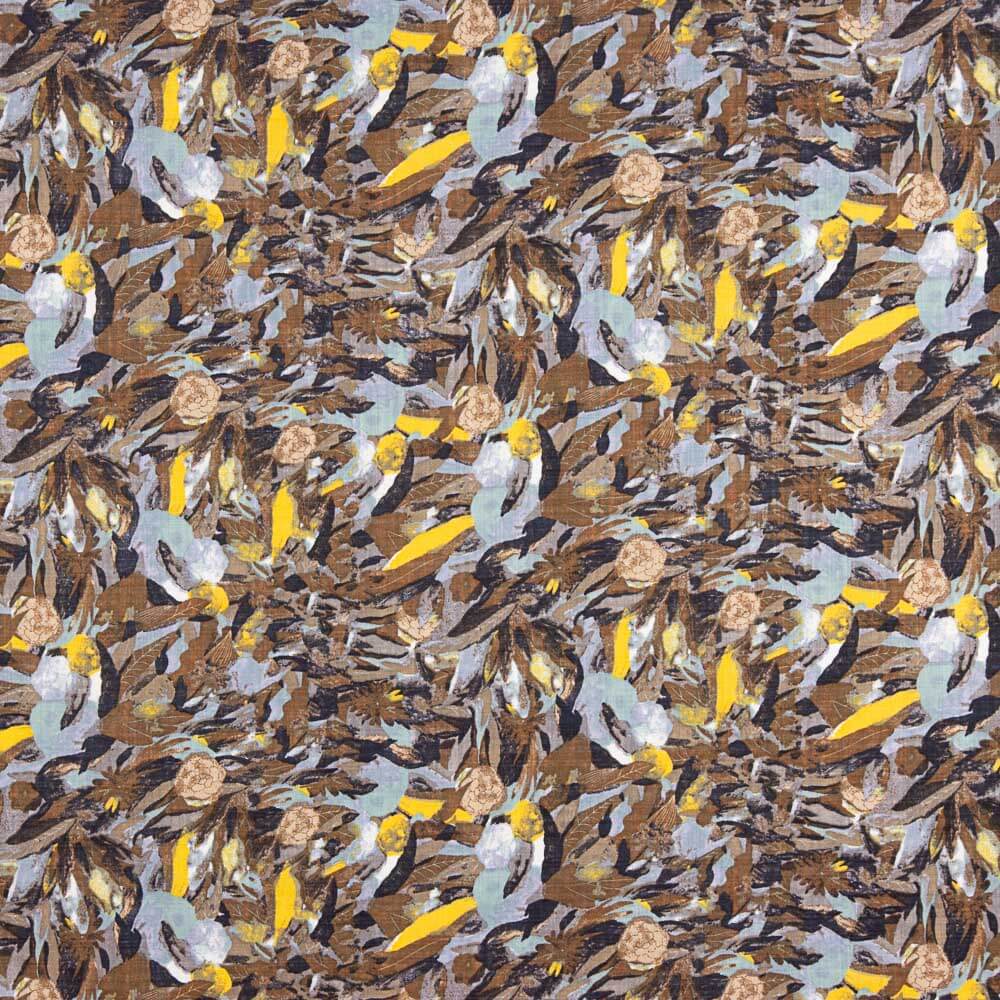 Achetez un tissu de voile de coton imprimé de feuilles bleues. Tissu en voile de coton très fin et agréable pour les doublures de robes d'été ou de chemises fines. Tissu doux, fin et respirant, très agréable de par sa composition.